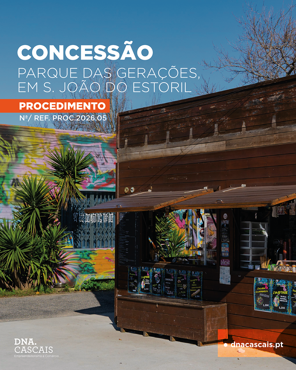 Por deliberação do Conselho de Administração, a Agência DNA Cascais lançou um procedimento referente à exploração de uma cafetaria localizada no Parque das Gerações, em S. João do Estoril.